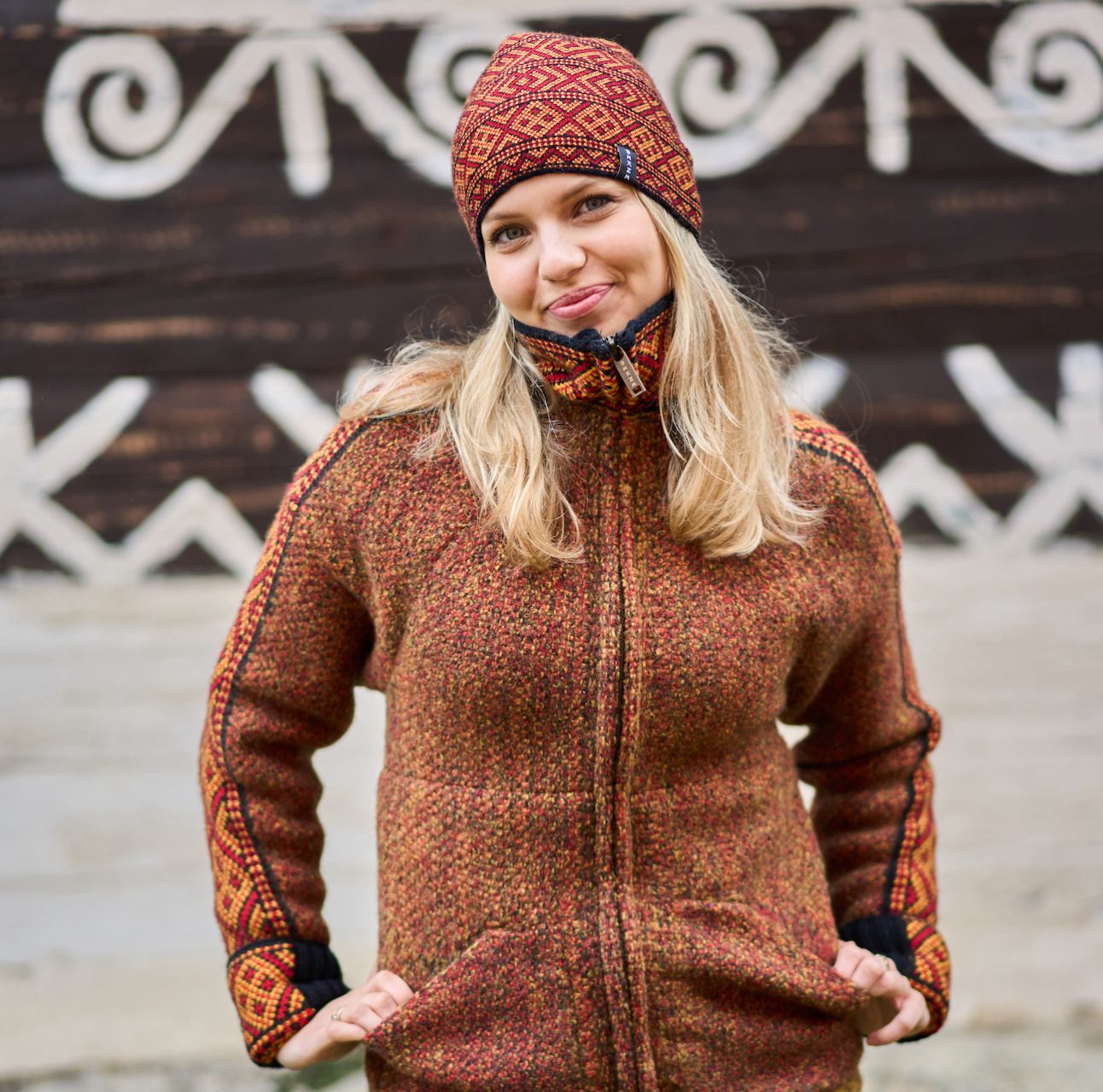 spojenie dvoch typov spracovania vlny pletenej a tzv. plstenia, čo vytvára originálny vzhľad a príjemný pocit na dotyk