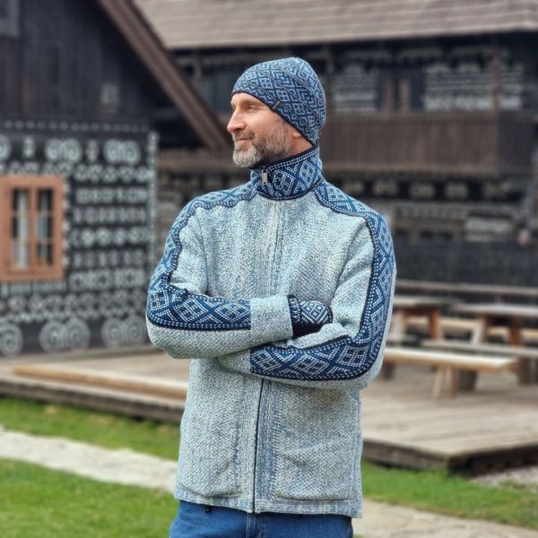 - spojenie dvoch typov spracovania vlny pletenej a tzv. plstenia, čo vytvára originálny vzhľad a príjemný pocit na dotyk